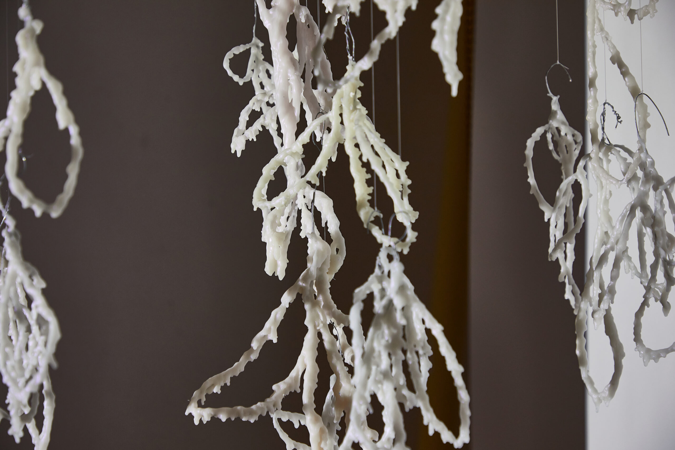 Création de sculptures composées de structures en fil de métal, recouvertes de plusieurs couches de cire destinées à fondre, conçues comme un hommage au mythe d’Icare.